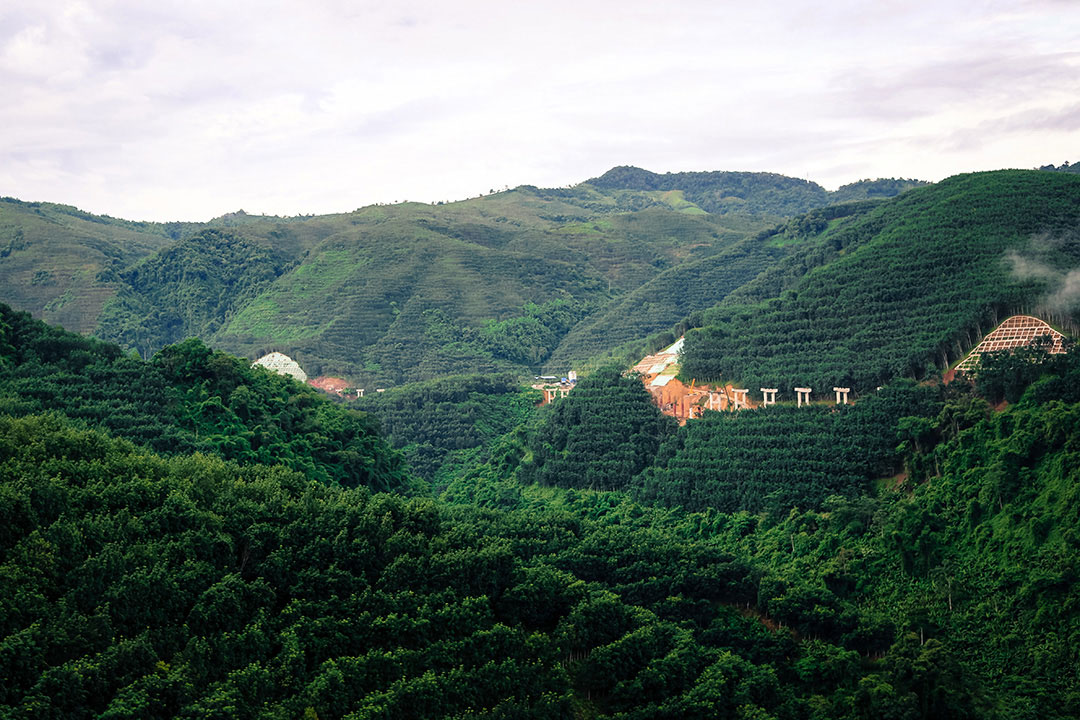 Leaving the dam, I hear that it may be possible for me to catch a Chinese freighter to the Golden Triangle, where Thailand, Laos, and Myanmar come together. I drive south from Jinghong through the dramatic mountains of Yunnan, almost uniformly encircled by rubber plantations. It’s a world of rubber, battered motorbikes with sap-stained buckets, backpacks jammed with pesticide spray, and endless green cathedrals of identical trees.
